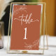 Minimal Minimalist Terracotta Branch Leaf Wedding Table Number