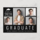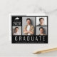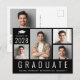 Minimal modern black graduation announcement card featuring a 4 picture photo collage, "Graduate" written across the bottom in large white letters and his or her class year, name and school or university in simple white typography. On the reverse side, add an additional photo and personalised message.