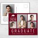 Minimal Modern 5 Photo Collage Burgundy Graduation Announcement Postcard