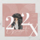 Modern geometric photo arch graduation announcement. The design features an arch line pattern with a photo arch frame. Customize with your grad's photo placed inside a modern arch photo frame. Large text 202X to display the graduation year displayed boldly with "Graduate" Displayed in elegant script. Personalize with the grad's name and school. The reverse side features a modern geometric arch pattern that beautifully complements the front grad card design. You can change the background color as well as the arch shapes to any color to complement your photo. Designed by Moodthology Papery.