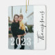Minimal Modern Bold Year Family Name Script Photos Ceramic Ornament
