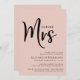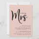 Minimal modern "Future Mrs" blush pink bridal shower invitation with "Mrs" written in a large elegant script.
