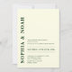 This invitation features a sophisticated ivory background with a minimalistic design. The names of the couple are highlighted in bold, elegant typography in emerald green, adding a touch of modern elegance to the invitation.