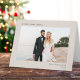 Elegant light taupe folded holiday card with a minimal modern design featuring your photo, and "Merry Christmas," your name and the year in simple typography. Add your personalised message to friends and family on the inside.