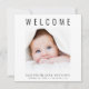 An elegant minimalist square birth announcement to introduce your newborn baby to friends and family. This design features "Welcome" across the top in large typography, their photo and their name, birth date and birth stats in simple modern typography. On the back, add a personalised message.
