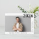 Minimal, modern graduation announcement featuring the graduate's photo and their grad's name, school and class year in simple typography.