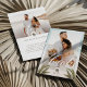 Thank your wedding guests with our modern and minimal two-photo wedding thank you card. The design features a large photo on the front with "Thanks" displayed in a modern script. Modern arch palm tree monogram design to customise with couple's monogram. The reverse side features a second photo with a "Love" script overlay and personalised with your own thank you message. Design by Moodthology Papery