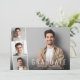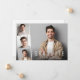 Minimal modern graduation announcement flat card featuring the graduate's photo overlayed with a strip of three smaller square photos and "Graduate," their name, school and class year in simple white typography.