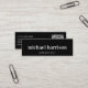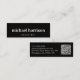 Professional black mini business card with your name in bold white minimal modern typography and your profession, job title or company underneath in simple white typography. On the reverse side, add your contact information (such as email, telephone numbers, firm name and mailing address) and input a URL address to create a scannable QR code connected to your website, portfolio, social media profile, or any other platform that showcases your work, making it easy for customers and clients to explore your expertise.