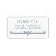 Minimal modern dusty blue on white return address labels featuring a classic sans serif font above a clean lined scroll for an elegant, minimal feel.