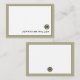 Modern minimalist custom flat note card design features sage green and black monogram medallion with name below in classic block typography that can be personalised with your monogram initial, name or custom text. Space for your handwritten note is included and the back of the card features a complimentary monogram medallion.