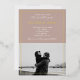 Minimal wedding invitation features modern script, photo and names in real foil.
