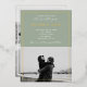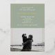 Minimal wedding invitation features modern script, photo and names in real foil.