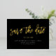 Minimal Modern Script Save The Date Black Gold