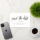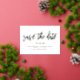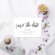 This modern yet elegant save the date announcement features a classic white background, the greeting "save the date" and your wedding date in gold foil, with your info beneath in black. You can customise this design even further by adding another photo or additional text to the back. Foil is available in gold, silver, or rose gold and absolutely shines!