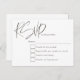 A convenient way for your guests to RSVP to your invitations is by postcard with your address details already there so they can just complete the front and pop it back in the post to you. This elegant minimalist design has the header RSVP in a stylish set script font in dark brown. The rest of the text is easily personalised including your return address details on the front. You can also change the edible text colour and background colour if you wish via the Click to Customise Further option.