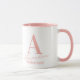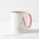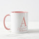 This is a modern, personalised monogram design. This stylish design is in trending pink and white, with script typography. It's perfect for a personalised gift for your bridesmaid or maid of honour, and ideal as a bridal party thank you gift or as a party accessory, or party favour for your bachelorette party or bridal shower. To personalise, simply add your bridesmaid's name and initial letter by typing it into the personalise this text box. Check out the design editing tool to change the colour or font. For help with personalisation, matching products, or for a custom design, contact me via zazzle chat or email: ursuladawnmoon@gmail.com