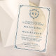 Minimal Monogram Crest Frame Dusty Blue Wedding Vellum Invitations