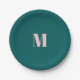 Minimal Monogram Inital Letter Green Pink Paper Plate