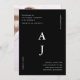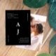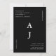 This modern minimalist black and white wedding invitation features a big centre monogram framed with wedding detail typography and a full photo back.