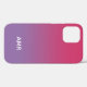 Minimal raspberry pink to light purple gradient features your monogram in a stylish white sans serif font near the bottom. Add your initials, name, or other text in the sidebar. Other case styles and models are also available in the sidebar.