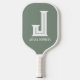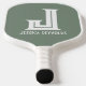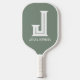 This minimal monogram pickleball paddle in sage green is professional, bold and classic with your first initial in a fabulous modern font and your name in a coordinating font in white. Uniquely you!