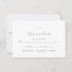 This minimal black and white rsvp wedding response card features a simple monogram and rsvp script with meal choice selection.