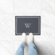 A doormat featuring a minimal style monogram framed in the centre. Underneath this towards the bottom is the established date of your family. The background contains a anchor grey. The outside border frame is silver to compliment the background along with the silver monogram.