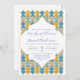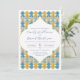 Modern Moroccan blue, yellow and golden tile, Moroccan art personalised wedding invitation. This product can be easily personalised. If you need help with the customisation of the product or need matching products kindly please contact me via Zazzle.