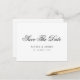 White Islamic Muslim Modern Wedding Save The Date postcard. This is an elegant, stylish announcement with a classic black script calligraphy font. Minimalist. Clean. Card colour can be personalised and you can edit the font colour, type and size too for this template. You can change all the information that is written on the front and the back of the post card. This product can be used for nikah, walima, mehndi or shaadi ceremonies or even to announce engagement party. Made at Her Line For Design store by Ayesha.