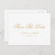 White and Gold Nikah Islamic Muslim Wedding Save The Date postcard. This is an elegant, vintage announcement in a script calligraphy font. Card colour can be customised and you can change the font colour, type and size too. You can edit all the information that is written on the front and the back of the post card. Made at Her Line For Design store.