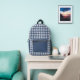 Minimal Navy Blue and White Plaid Pattern Printed Backpack