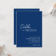 Modern navy blue all in one wedding invitation featuring a simple and minimal design with the bride's name in an elegant script and the groom's name in a contemporary sans serif font. Below in the lower right corner are your event details in a minimalist layout. The back has your additional details and QR Code, so you can skip the enclosure card and RSVP card.