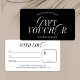 Elegant gift voucher card with minimalist black and white background, nostalgic calligraphy fonts and a trendy design. This fully editable gift card design includes space for your business and gift voucher details. Great to use for your beauty salon, lash business, nails spa or any other professional services to create gift certificates for clients.
