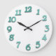 Minimal Numbers Gray White Grey Teal Metallic Large Clock