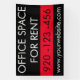 Modern and minimal black and white office space for Rent Commercial Real Estate Sign that can be personalised with your phone number or website. Great Real estate agency promotional tool and marketing product for every real estate business and realty brokerage.