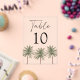 Bring a chic, tropical vibe to your reception with our Modern Minimal Palm Tree Wedding Table Number Cards. Featuring the table number in bold, minimalist style above a trio of elegantly sketched palm trees, these cards offer a fresh and sophisticated look on a frosted or transparent acrylic background. Designed to coordinate seamlessly with our Minimal Palm Tree wedding collection, these table numbers are perfect for beach and destination weddings. Customise each table card individually by adding the table number, and add each one to your cart for a unique, personalised set. Please note: this table card does not come with a stand.