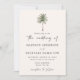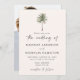 Tropical wedding invitations featuring a single palm tree illustration at the top of the invite with an ivory background. Personalise the palm tree wedding invites with your names and wedding details in black lettering with a modern hand-lettered script accenting the design. The simple tropical wedding invite reverses to display your full-bleed vertical engagement photo. Designed to coordinate with our Minimal Palm Tree wedding collection.