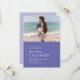Elegant and minimal wedding save the date card featuring a simple modern all-caps white font over an elegant basic plain periwinkle purple background. The front of this invite is customisable with one of your favourite engagement pictures on top, along with your names, ceremony date, and location, while the back of the invitation is personalizable with the bride and groom's monograms.