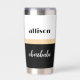 Hustle like a boss babe Insulated Tumbler. A modern, chic design with bold typography on a black and white background divided by a champagne gold-coloured border. Personalise the tumbler with your name and carry it with you wherever your hustle takes you.