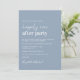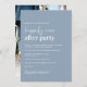 Minimal modern dusty blue wedding reception save the date. The front features "Happily Ever After Party" in a blend of a chic white script and bold trendy white lettering. Personalise your marriage announcement and save the date, and add your names in a signature-like script. The reverse side features your photo, your names, and wedding and reception dates (if your wedding and reception dates are the same, put on the same line with your names next to the heart).
