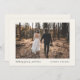 Minimal modern light cream elopement announcement card to let family and friends know that your wedding plans changed and you eloped. The front features your wedding photo, "Nothing fancy, just love" (you can personalise this to "We Eloped," Just Married," etc) and your first names. Om the reverse side you can personalise your message in more detail, including any celebration parties to be held at a later date, and add your Mr & Mrs signature.