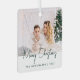Wish family and friends as special Merry Christmas with this modern minimalist photo keepsake ornament. The dark green text reads "Merry Christmas" in trendy handwriting script. Easily replace the sample image with your favourite photo, and add your family name or first names and the year below. A white gradient screen helps make the text overlay pop.