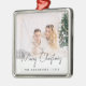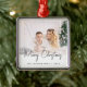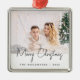 Minimal Photo Merry Christmas Grey Script Metal Ornament