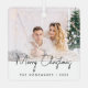 Wish family and friends as special Merry Christmas with this modern minimalist photo keepsake ornament. The charcoal grey text reads "Merry Christmas" in trendy handwriting script. Easily replace the sample image with your favourite photo, and add your family name or first names and the year below. A white gradient screen helps make the text overlay pop.