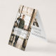 The front of the business card features a full photo layout with a simple white framed nameplate that features the company name. The inside features the contact info and second photo in a clean and minimal layout. The back contains an optional logo placeholder to display your own business logo. You can customise the text size, font, colours, and background colour to suit your own personal preference.