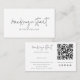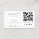 Elevate your networking with this minimal, professional business card with a sleek modern design. The card showcases a stylish script font paired with clean social media icons, making it easy to highlight your online presence. A scannable QR code provides a seamless way to connect, directing clients to your website, portfolio, or social media profiles. Perfect for entrepreneurs, designers, wedding planners, creatives, and professionals who value simplicity and sophistication in their branding.