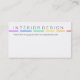 Clean, modern double-sided business card featuring bold typography and rainbow accent lines. The front displays one large word as your headline in minimal sans-serif style, complemented by a horizontal dividing line in vibrant rainbow colors (pink, orange, yellow, green, blue, purple). The back side presents your contact information in light, elegant typography with the same headline and rainbow color stripe for visual continuity.