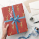 Minimal red Christmas xmas gold moose pattern Wrapping Paper