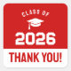 Minimal Red Class of 2026 Thank You Square Sticker